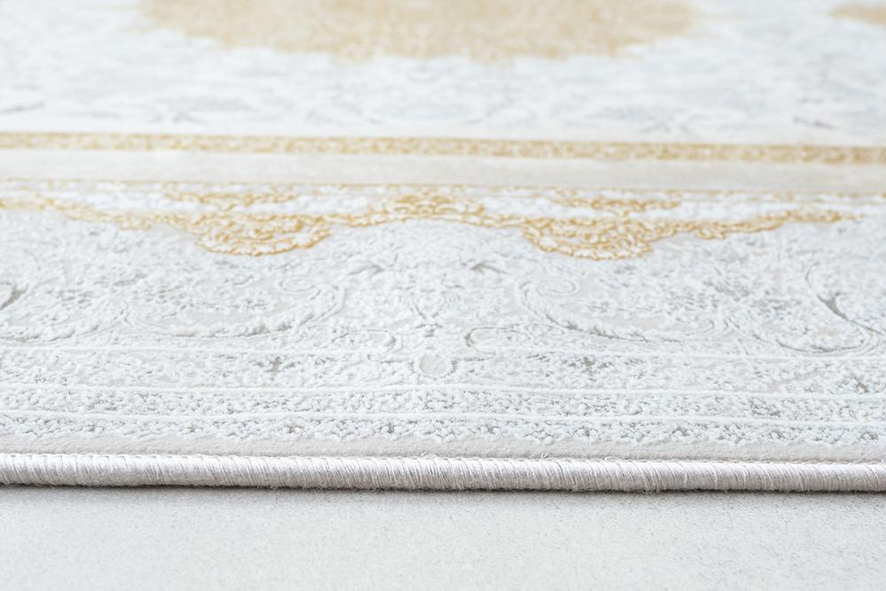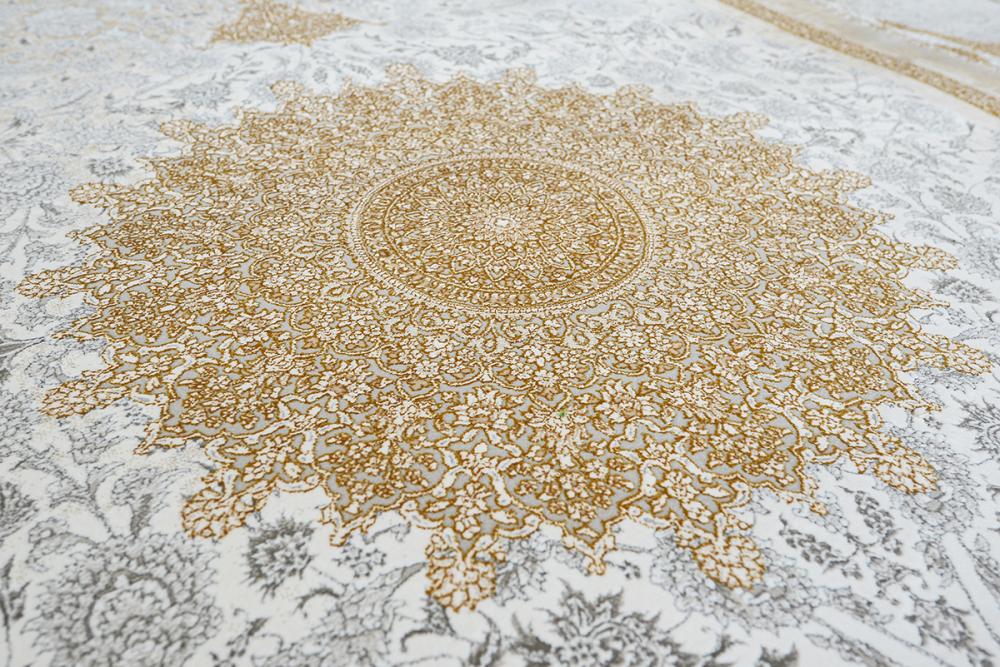 - سجاده ايراني منسوجة في إيران باستخدام تقنيات حديثة مع الحفاظ على الروح التقليدية حيث أنها مزيج من زخرفة مركزية ذهبية جذابة تتوسط السجادة وتحيط بها نقوش نباتية ناعمة.