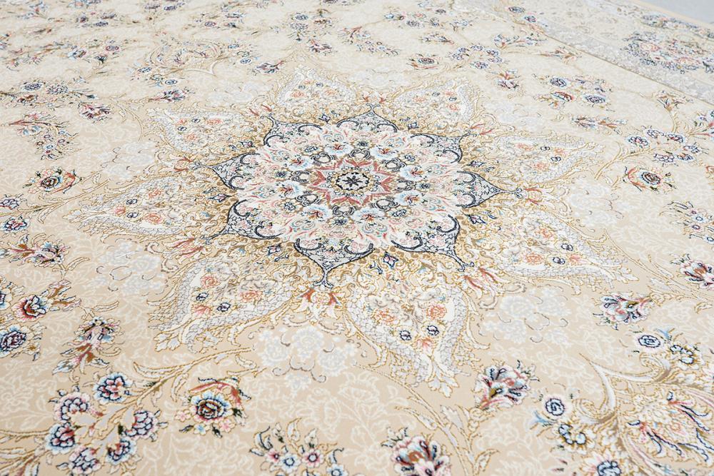 سجاد ايراني فخم ينبض بالفخامة والهدوء، بتصميم إيراني كلاسيكي دقيق وتفاصيل زهرية متناسقة على أرضية بيج فاتحة. يضيف لمسة من الرقي الراقي لأي مساحة داخلية، ويعتبر خيار رائع لعشاق الجمال الكلاسيكي الذي لا يبهت مع الزمن. مزيج الألوان الهادئة والتفاصيل المنسوجة بعناية يجعله تحفة فنية تليق بأرقى المنازل.