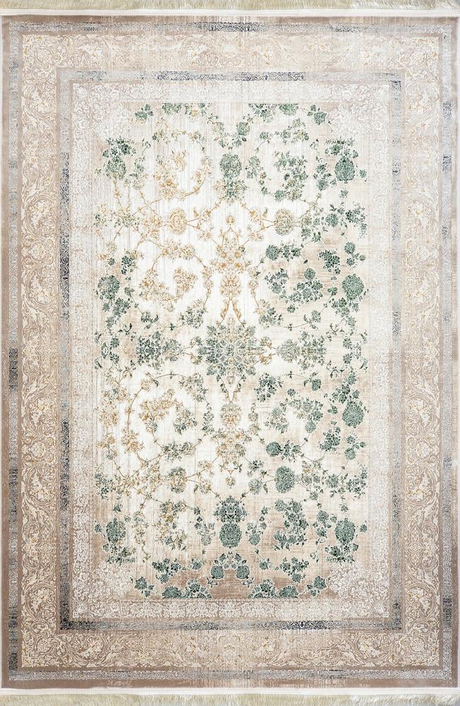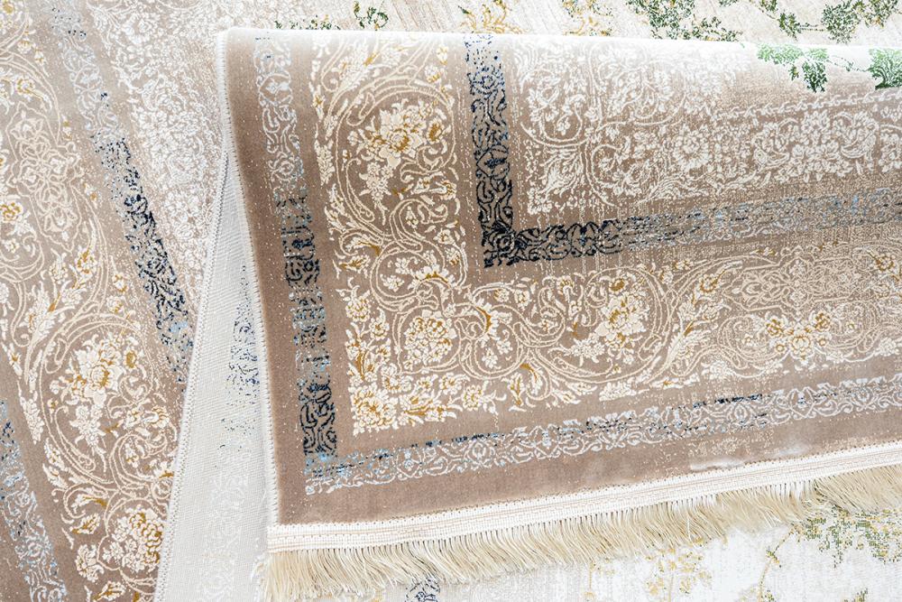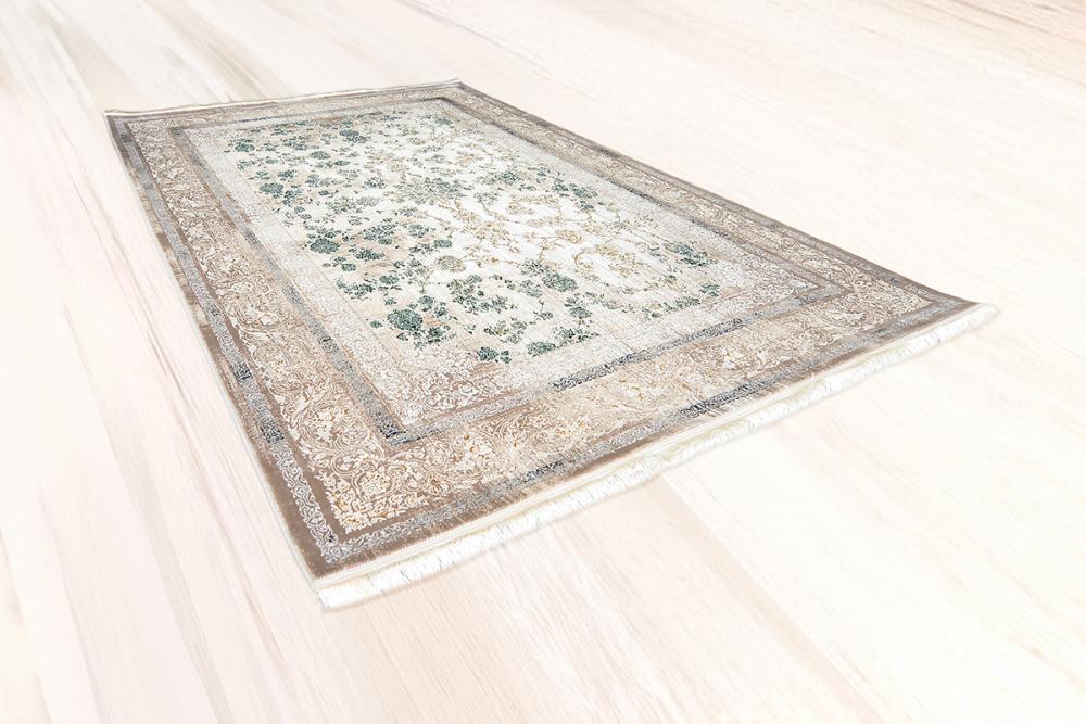 سجاد ايراني كلاسيك فاخر اخضر فاخر يجسّد مزيجًا ساحرًا من الفخامة الكلاسيكية وروح الطبيعة النضرة، حيث تتناثر النقوش النباتية الخضراء وسط أرضية بيج فاتحة مُحاطة بإطار مزخرف بدقة. تصميمها المتوازن يمنح أي مساحة لمسة راقية وهدوء بصري يجمع بين الجمال والفن الإيراني الأصيل.