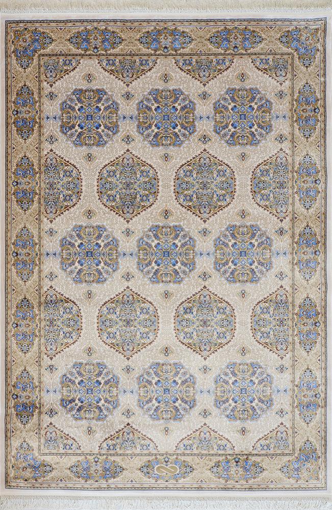 سجاد نيو كلاسيك بيج دولفين بلمسات من الصفاء الملكي، مع تصميم متناغم يجمع بين الخلفية البيج الفاتحة ونقوش الزخارف الشرقية بلون الأزرق الملكي، يضفي طابع هادئ وأنيق على أي مساحة. هذه السجادة ليست مجرد قطعة فرش، بل لوحة فنية تمزج بين الأصالة والرقي المعاصر.